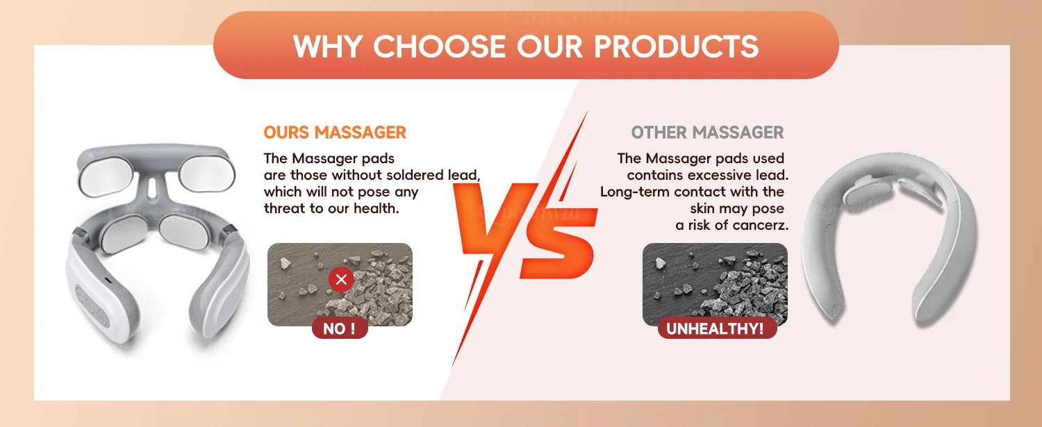 Our neck massager features 4 strategically placed massage pads with advanced lead-free electrode technology, ensuring complete safety during use. The premium materials provide effective muscle stimulation without any health concerns, making it ideal for daily relaxation and pain relief.