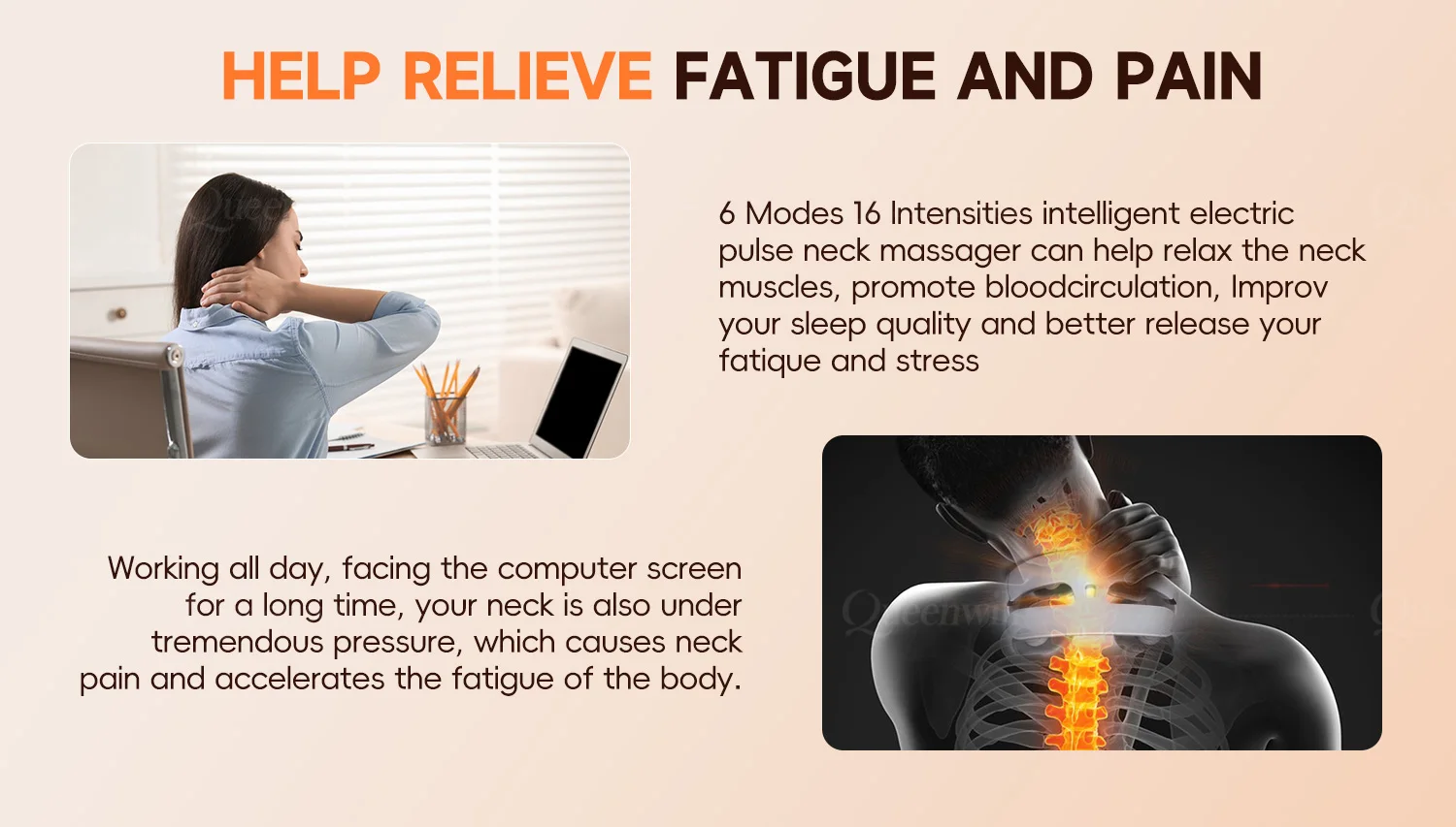 Designed for maximum comfort, this massager mimics professional finger-press techniques and warm to dissolve stress and fatigue in minutes.